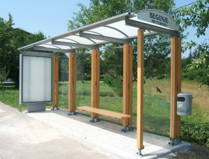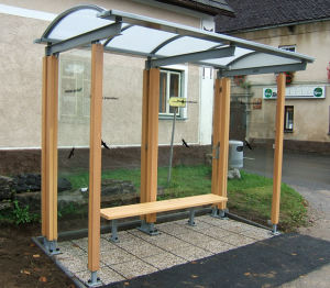 Bushaltestelle Stahlkonstruktion mit massiven Holz verkleidet