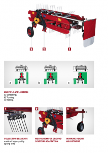 Bandrechen / Riemenschwader sind zum Harken, Verteilen und Drehen von gemähter Masse ausgelegt, was die Trocknungszeit verkürzt. Diese Art von Rechen ist sehr einfach zu bedienen und eignet sich für Traktoren mit geringer Leistung.