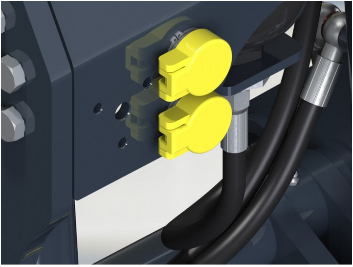 Der Speicher ist schon werkseitig vormontiert und in Fronthydraulik integriert.